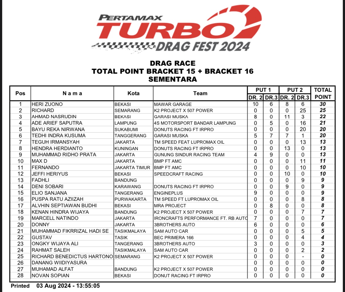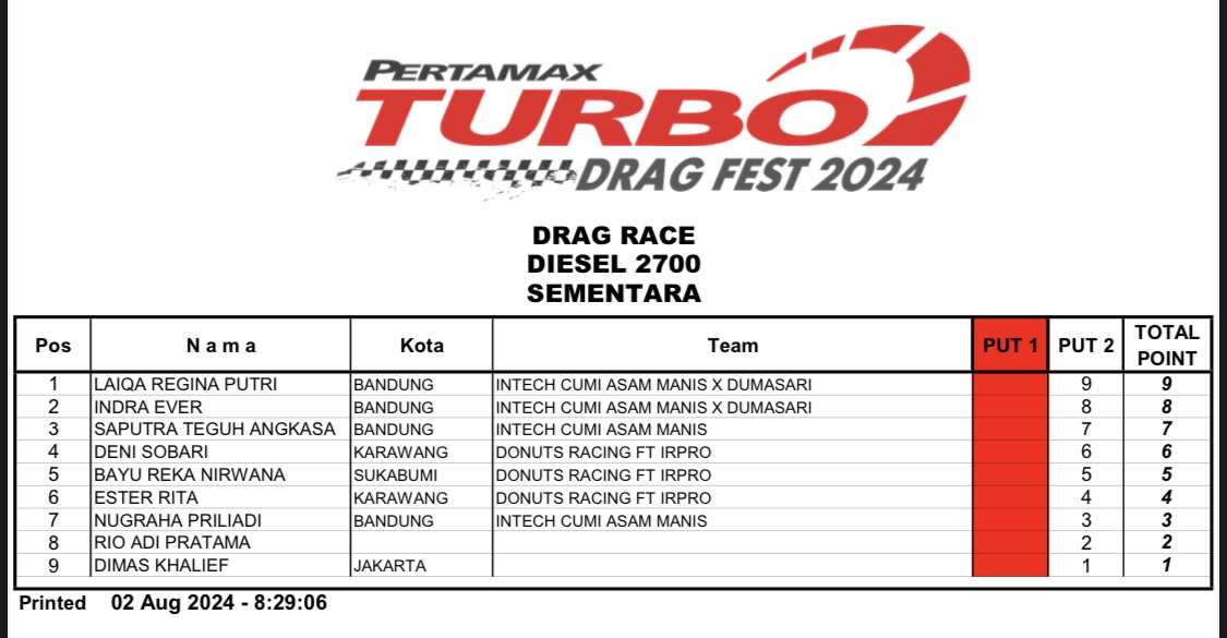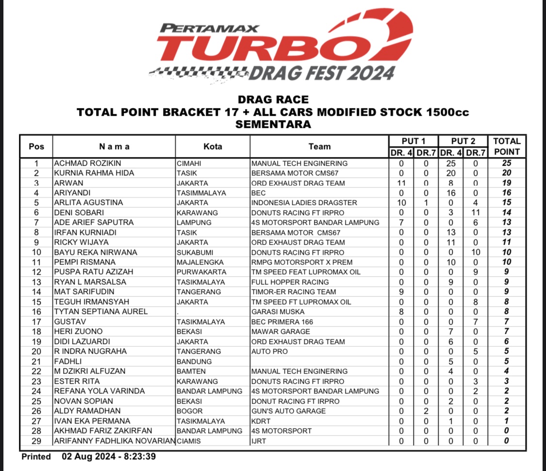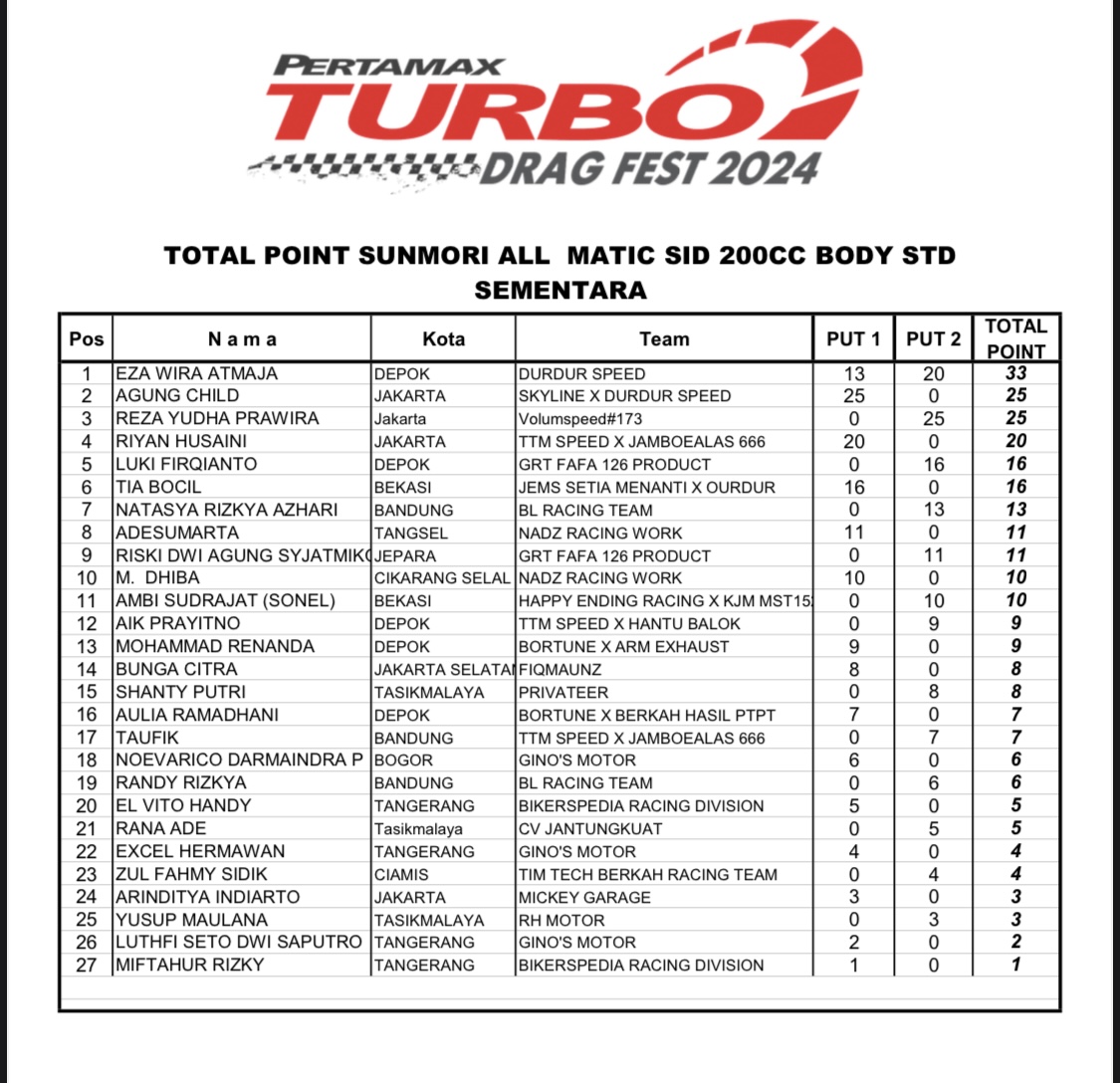 Apalagi tentunya untuk nama-nama yang terpampang, dalam catatan putaran 1, tidak ingin melewatkan gelaran seri 2 dari Pertamax Turbo itu. Sebab syarat dari akan berhasil sah sebagai juara, ialah minimal harus mengikuti 2 seri dari total 3 seri Pertamax Turbo Drag Fest 2024.