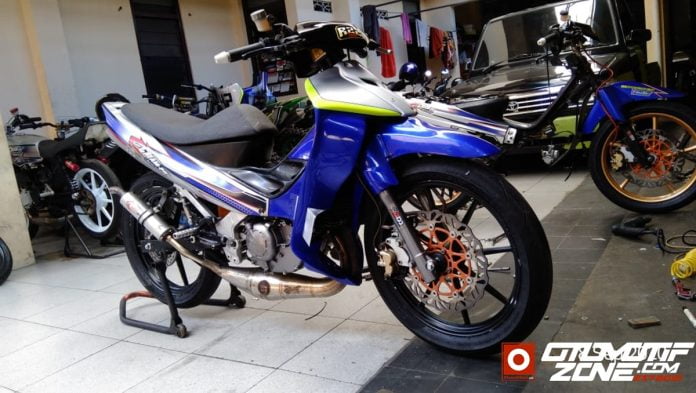 Paling di sorot kelas mahal yang mengandalkan motor Yamaha 125Z. Kali ini tak banyak merubah aplikasi alias setting dan sebagainya. Eh, ada sih. “Coba setting silincer agak pendek ini mas. Karena Minggu kemarin tidak ikut main Semarang. Mudah-mudahan ada keburuntungan,” kata Rema, head mekanik yang mengrusi motor-motor 2T andalannya.