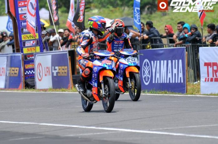 “Pokoknya saya fokus push push push karena saya sempat berada di posisi tiga. Alhamdulillah saya bisa meraih juara pada race kali ini,” ujar Fahmi Basam langsung kepada redaksi usai balapan.