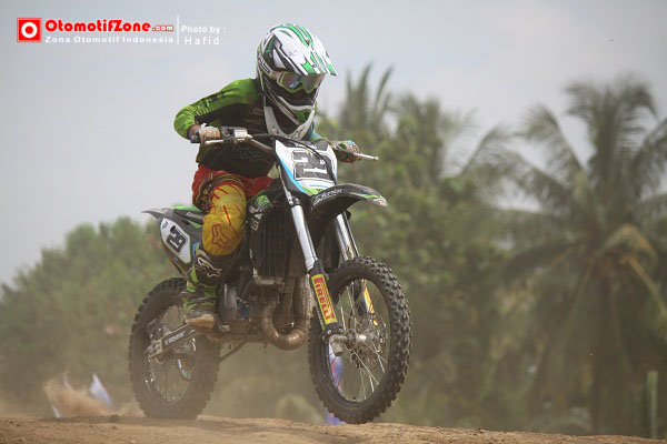 Otomotifzone.com- Purwokerto. Kejurnas Motocross kelas Spesial Engine 85cc bintangnya masih Dafa Saputra. Pembalap asal Bojonegoro ini kejar target 2015. “Dari seri 1 pokoknya harus juara mas. Lawanku berat semua mas.” ucap Dafa. Total point seri satu membuatnya semakin melambung memimpin klasemen kelas 85cc karena dalam dua moto dia memimpin jalannya lomba. Memimpin jauh. Excel yang dirasa lawan terberat hanya bisa di posisi dua tertinggal 8 detik.
