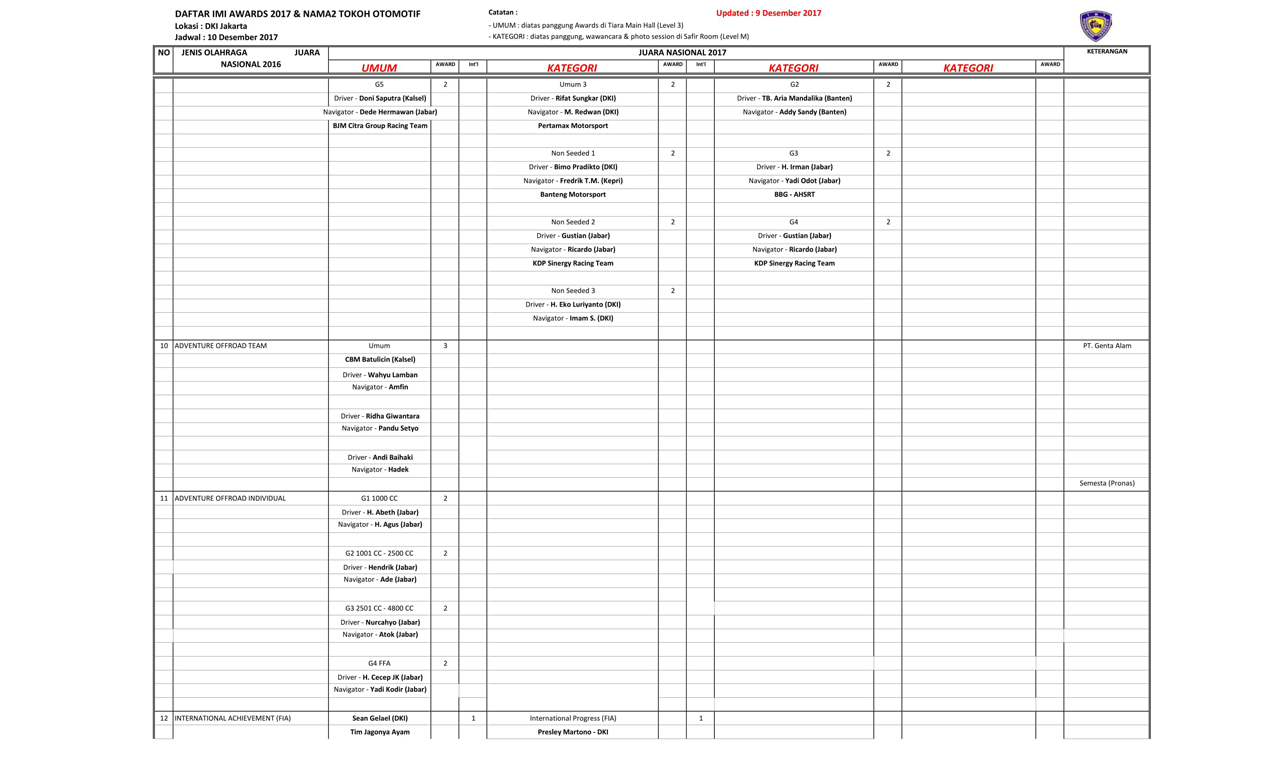 Adapun momen penganugerahan itu turut dihadiri langsung Sadikin Aksa, Ketua Umum IMI, dan perwakilan seluruh Pengprov IMI serta tokoh-tokoh otomotif nasional. Terlihat sejumlah nama penerima penghargaan yang bertengger masih didominasi wajah-wajah lama. Sebut saja seperti Rizal Sungkar, Haridarma Manoppo, Erwin Mancha dan lainnya.