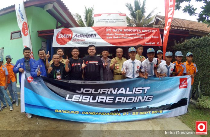 OtomotifZone.com – Pangandaran. Dalam Journalist Leisure Riding dengan perjalanan menuju Pangandaran – Bandung bersama jajaran manajemen DAM, PT Daya Adicipta Mustika (DAM) selaku distributor sepeda motor dan suku cadang Honda di wilayah Jawa Barat mengajak jurnalis berkunjung ke SMK Negeri 1 Pangandaran di Jl. Raya Merdeka No. 222 Pangandaran, Selasa (22/9). SMKN 1 Pangandaran sebagai salah satu sekolah menengah kejuruan (SMK) binaan yang didukung DAM dalam Program Kurikulum Teknik Sepeda Motor (KTSM) Honda.