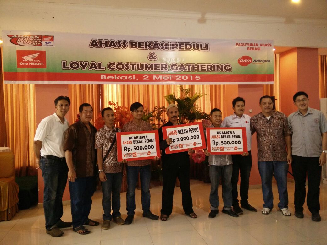 Bersamaan dengan kegiatan CSR Pendidikan, dalam kegiatan ini 101 orang konsumen loyal mendapatkan hadiah menarik dari AHASS Bekasi dan Cikarang. “Ini merupakan bentuk ucapan terima kasih dan apresiasi kami terhadap konsumen karena telah mempercayakan perawatan dan perbaikan sepeda motor Honda di AHASS Bekasi dan Cikarang,” kata Henri.