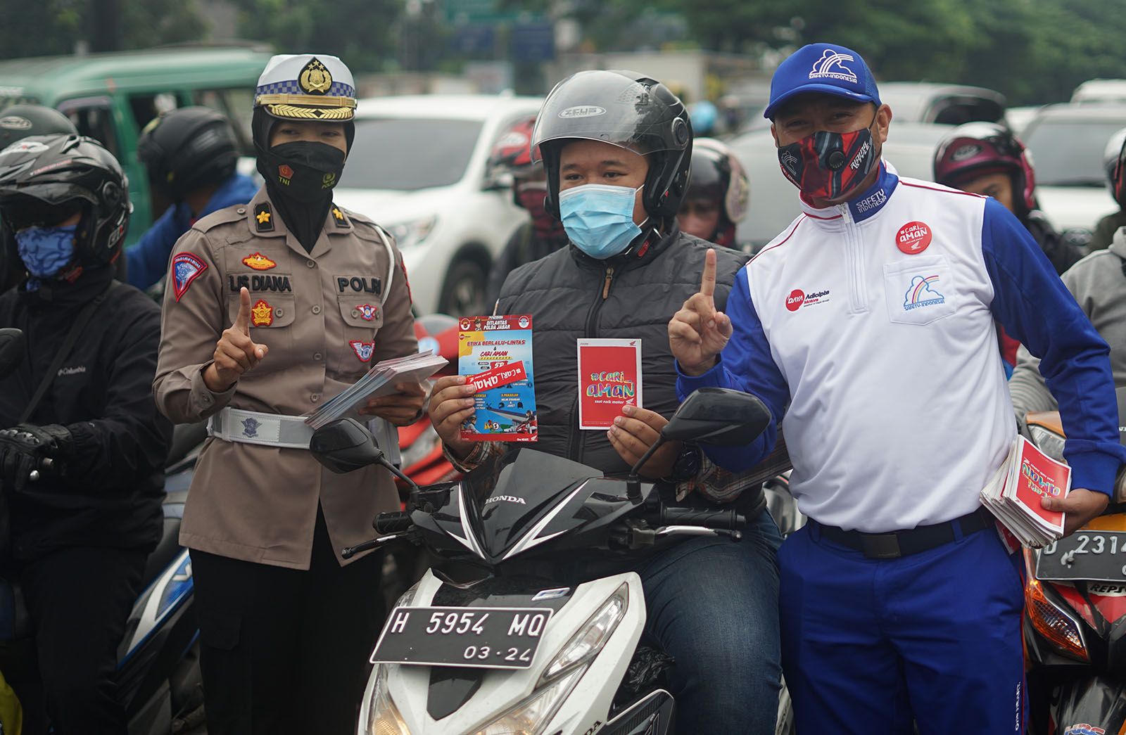 “Tim Safety Riding Honda Jawa Barat bersama dengan Dirlantas Polda Jabar juga memberikan himbauan ke seluruh pengendara di beberapa titik perempatan yang paling banyak terjadi kecelakaan dan terdapat blind spot di wilayah Kota Bandung melalui baliho, spanduk, penyebaran brosur, dan buku pedoman keselamatan berlalu lintas,” ujar Demmy.