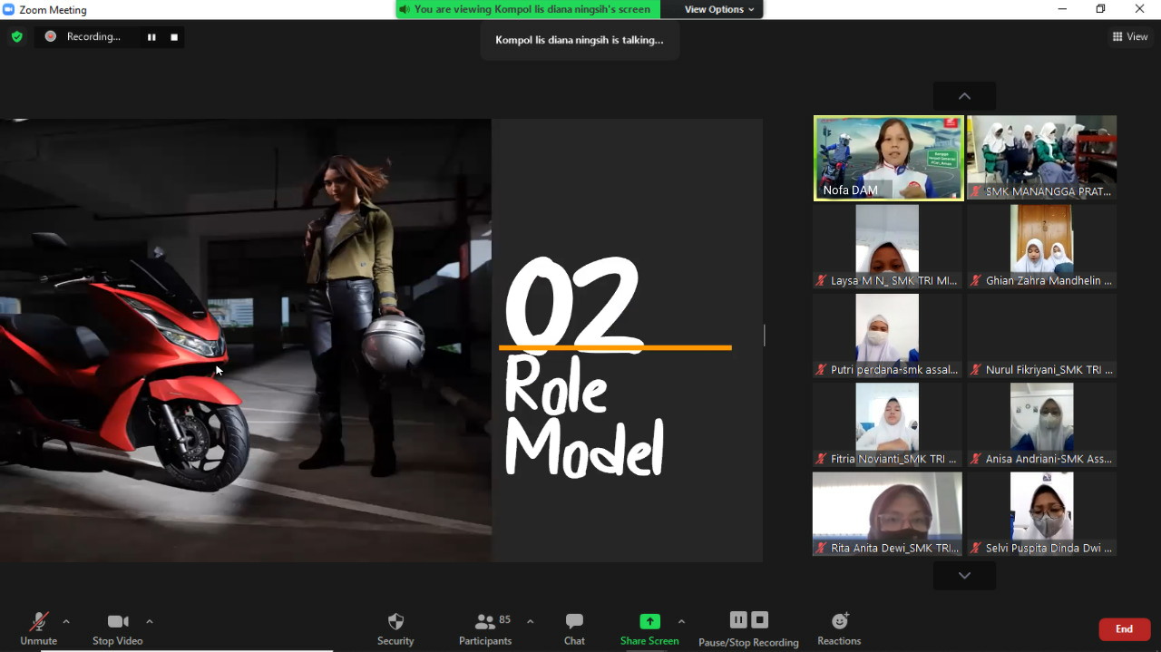 OtomotifZone.com – Bandung. Dalam rangka menyambut hari Kartini, PT Daya Adicipta Motora (DAM) selaku Main Dealer dan Suku Cadang Sepeda Motor Honda di Jawa Barat menggelar webinar safety riding bersama dengan 121 peserta wanita yang merupakan perwakilan dari masing-masing sekolah binaan Honda dan Kampus Widyatama, Bandung.