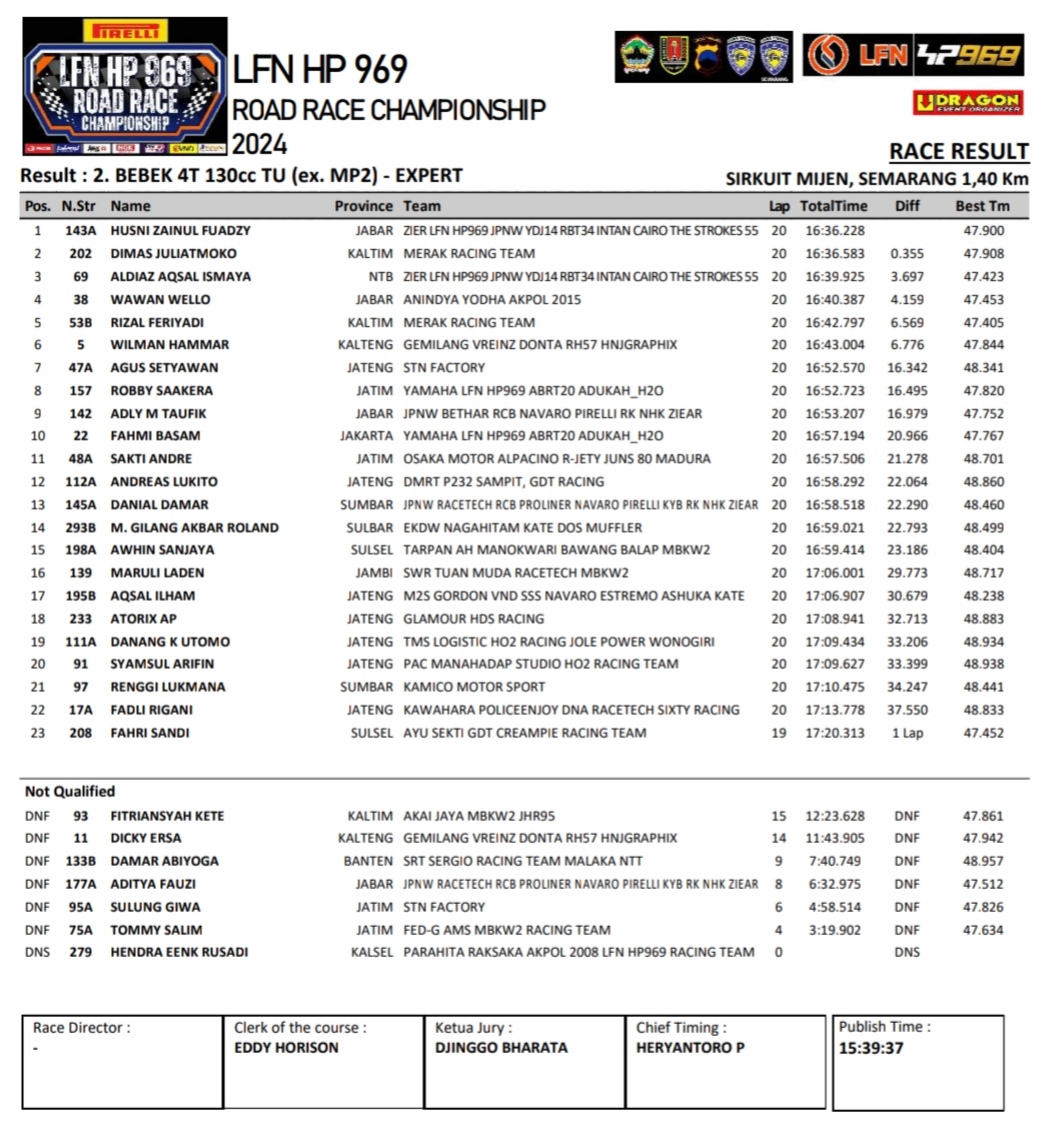 OtomotifZone.com – Semarang. Dimas Juliatmoko tidak ada di pole position Seri 2 LFN HP969 Sirkuit Mijen, Semarang 8 Agustus 2024. Tapi pembalap Merak Raja Dancer ini menjadi pembalap terlama yang memimpin balap setelah berhasil mengalahkan alih tempat terbaik Willi Hammer di posisi terdepan.