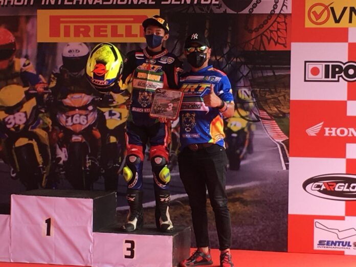 OtomotifZone.com – Sentul. Tim balap baru yang turut serta dalam event roadrace Piala Presiden 2021 yang berlangsung di sirkuit Sentul Besar (11-12/12) berhasil memberi kejutan. Arai Agaska yang juga merupakan putra dari mantan pembalap nasional asal region 3 Gading Laksana yang tarung pada kelas rookie (mp3) berhasil memberikan perlawan sejak pertama kemarin.