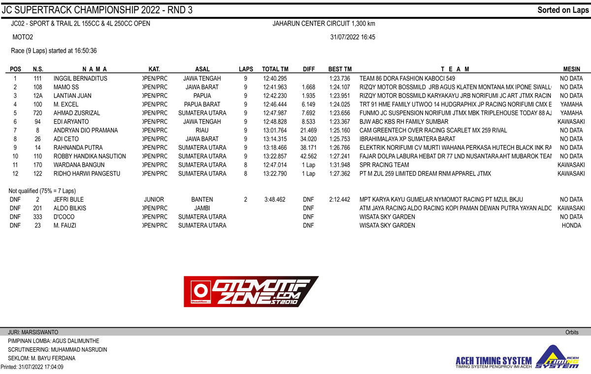 OtomotifZone.com-Medan. Kisah Katiman dan katimin memang menjadi cerita internal TEAM 86 DORA FASHION KABOCI 549 feat JC Suspension diajang JC Supertrack seri 3 2022, Sabtu-Minggu, 30-31 Juli 2022 di Jaharun Circuit Deli Serdang.
