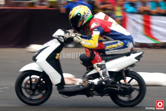 OtomotifZone.com – Bandung. Perkembangan matic race di jawa barat memang cukup signifikan. Selain ada balap khusus tersendiri, motor motor matick juga selalu jadi supporting di road race baik level Kejurda atau Kejurnas. Imbasnya menarik minat Dendy Bre, asisten manajer tim pabrikan Yamaha Trijaya yang bermarkas di Bandung ikutan balap. Bahkan pria ramah ini bela belain ikutan balap matic di Jawa Tengah.