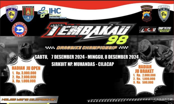 Memiliki tajuk balap, Tembakau 98 Drag Bike Championship. Kota Cilcap siap mengguncang ranah otomotif draf bike Nasional.