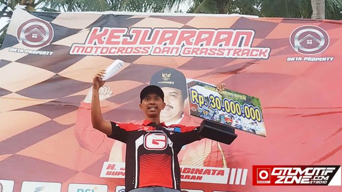 OtomotifZone.Com – Pangandaran. Di Sirkuit Okta Pangandaran Jawa Barat, Rizki HK berhasil membawa uang tunai sebesar Rp.30 juta. Rizky HK berhasil meraih juara umum kelas open pada gelaran MX dan GTX Bupati Pangandaran Cup Open 2022. Pembalap GTX (Grasstrack) Jawa Tengah dari tim Gordons Exhaust KYB Repsol TDR Giox RGT berhasil meraih point tertinggi.