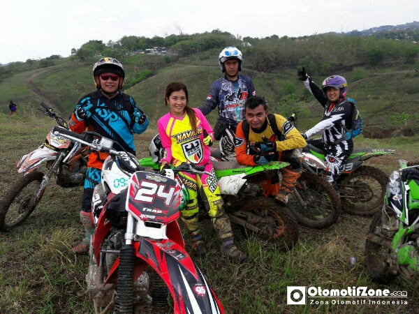 Sejarahnya pun singkat sekali kenal dengan beginian. “Dulu diajak main trabas pas ada event. Pertama kalinya main motor sampai seharian di hutan. Ngerasain keseruannya main motor, kotor-kotoran, banyaknya rintangan yang harus dicoba. Dan senengnya lagi banyak teman tambah seduluran. Keterusan sampai saat ini,” history Dinda yang berparas sedikit seperti bule.
