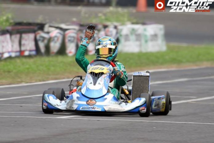 OtomotifZone.com – Bogor. Dominic Brayden B Setiawan (189) tampil luar biasa dan mendominasi jalannya balapan di Final Junior Rok Kejurnas Eshark Rok Cup Seri 5 yang digelar Minggu (27/7) di Sirkuit Internasional Karting Sentul, Jawa Barat.