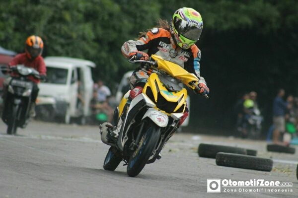 OtomotifZone.com-Salatiga. Wo……. Ditta Lambada. Jawara kelas wanita wilayah Jateng-DIY yang sedang meraja pada pentas grasstrack dalam dua tahun ini mau pindah haluan? Beberapa waktu lalu dara kelahiran Salatiga ini jajal spek motor roda dua tapi di lintasan aspal alias road race. Komentarnya?? “Ini saya pertama kali motor road race. Pertama naik langsung beberapa putaran hampir 15 menit. Nggak capek !!!” heran calon sarjana hukum ini.