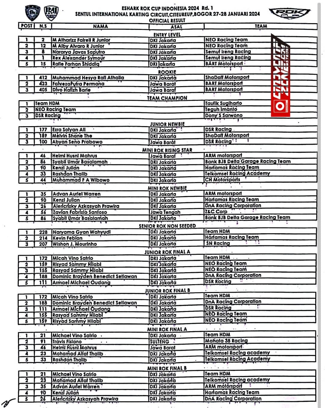 OtomotifZone.com – Jakarta. Kejuaraan bergengsi Eshark Rok Cup 2024 putaran 1 dimulai (28/1/23) di Sirkuit Internasional Karting Sentul, Bogor, Jawa Barat. Penuh drama dan persaingan sengit terjadi pada gelaran ini. Para pebalap saling unjuk gigi di putaran pertama Eshark Rok Cup pada tahun ini. Pertarungan sengit sampai sampai banyak aksi yang sangat menarik terlihat.