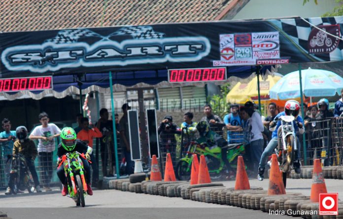 OtomotifZone.com – Cimahi. Demi terus mencari bibit baru pembalap muda dari Jawa Barat, Sumber Production dikomandoi Sumber Agung Rizki kembali menggelar event adu kebut lintasan lurus. Drag bike bertakjuk Drag Bike 201M Sumber Production GCRT (Giri Cilik Racing Team) Gass Poll yang digelar di sirkuit Brigif 15 Kujang II, Cimahi, Sabtu (26/9) kemarin, berlangsung seru.