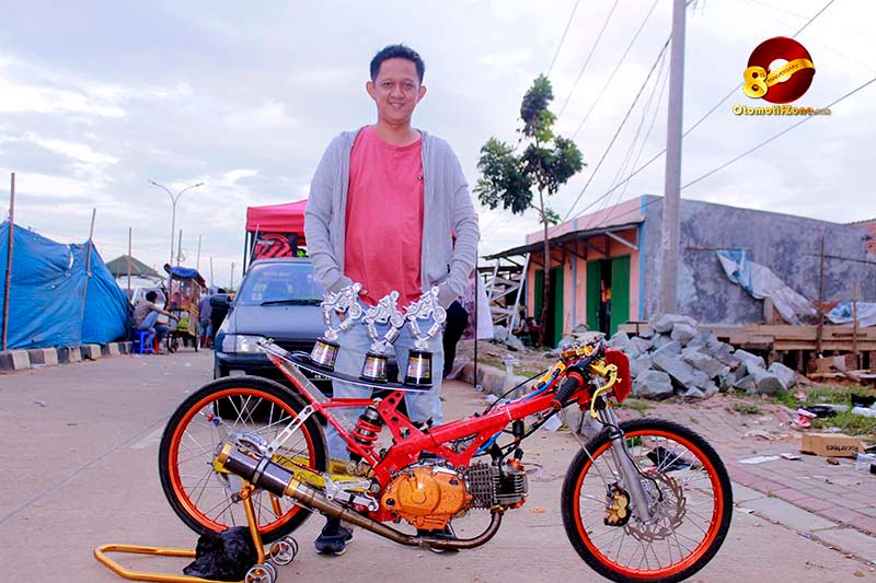 OtomotifZone.com – Banten. Gelaran kejuaraan drag bike 201M dalam memperingati anniversary 7 tahun Pbs Production Penampilan yang sangat maksimal di tunjukan oleh team Hens’s Racing Team di kelas Bebek 200cc Mesin Tidur lewat Osenk Tanxian, Eza Chemonk dan Ompong Kecil.