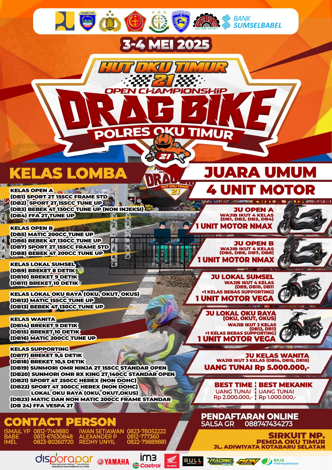 Event ini menjadi salah satu ajang bergengsi di Sumatera Selatan, diselenggarakan oleh Polres OKU Timur dengan dukungan penuh dari Disporapar, Yamaha, dan berbagai sponsor nasional lainnya. Total akan dipertandingkan puluhan kelas dengan kategori Open A, Open B, Lokal Sumsel, Lokal OKU Raya, Wanita, dan Supporting Class.