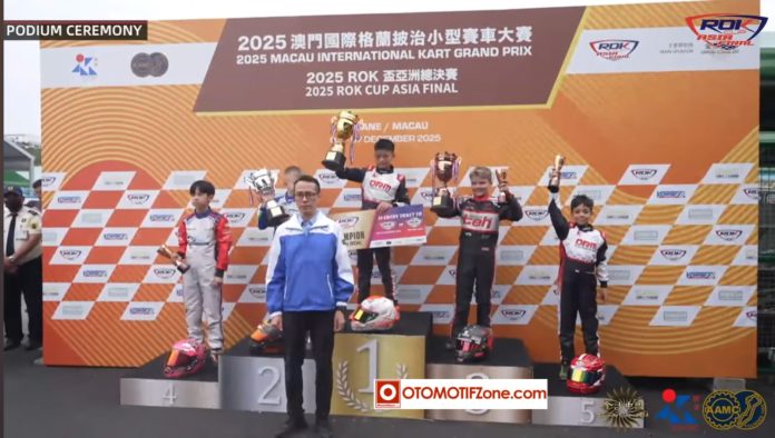 OtomotifZone.com – Jakarta. Penampilan gemilang ditunjukkan dua pebalap muda Indonesia pada gelaran Rok Cup Asia 2025, yang berlangsung Sabtu (7/12) di Sirkuit Coloane Karting Track, Macau. Pada kelas MiniRok yang dikenal sengit dan penuh talenta internasional, Indonesia sukses menempatkan dua wakilnya di jajaran podium terbaik.