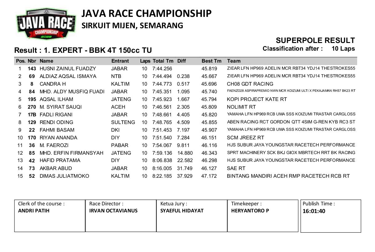 Hasil ini menegaskan dominasi Ziear Racing Team pada Superpole MP1 sekaligus membuka peluang pertarungan lebih panas di seri-seri berikutnya Java Race Championship 2026.