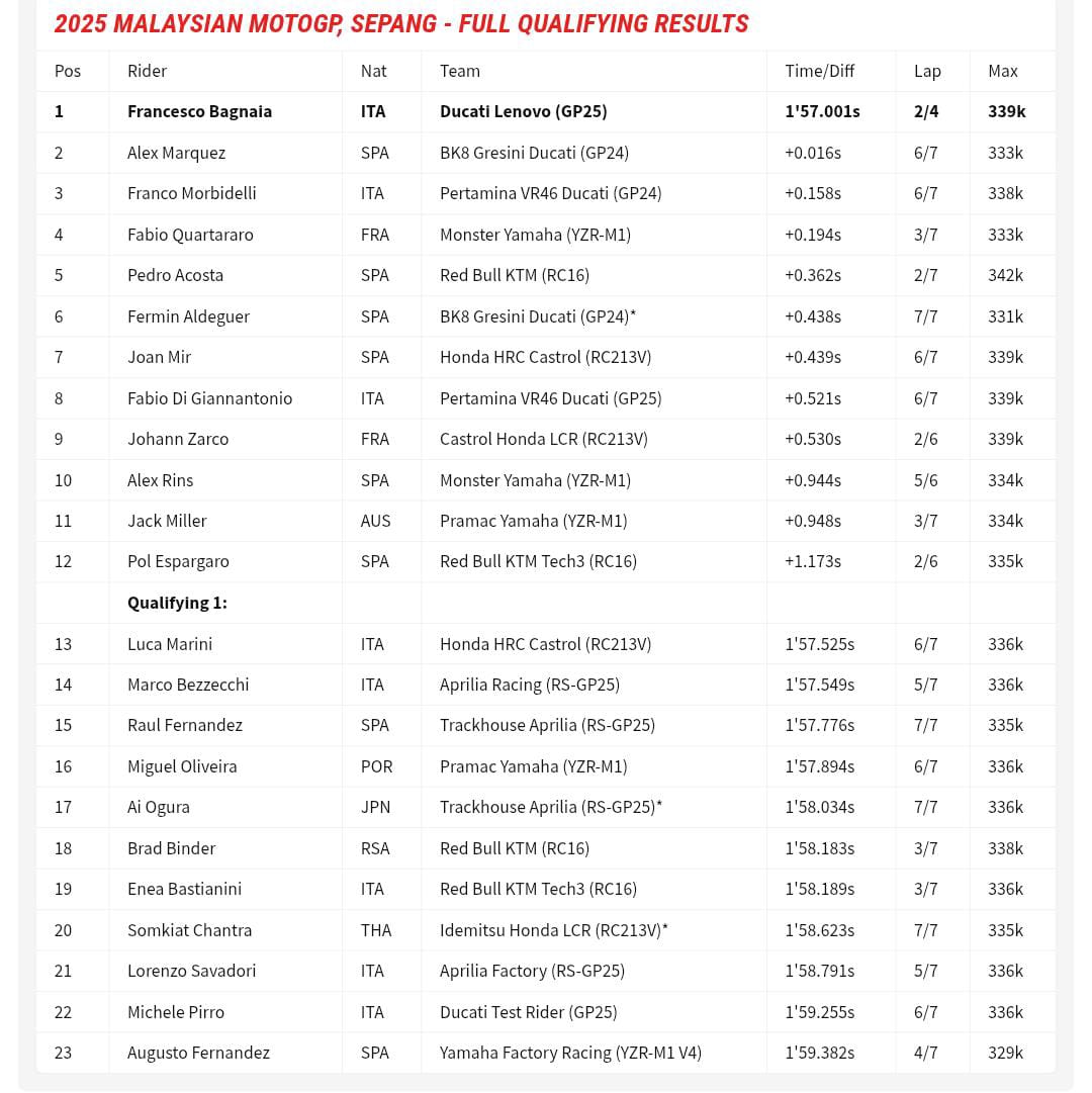 Hasil ini mempertegas kekuatan Ducati di musim 2025, di mana motor-motor mereka terus mendominasi baik dari sisi kecepatan maupun konsistensi. Pertarungan di balapan utama esok hari dipastikan akan berlangsung sengit, terutama di antara tiga jagoan Ducati yang siap memperebutkan kemenangan di Sepang.