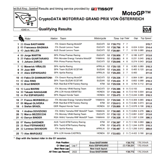 Di belakang mereka masih ada Prima Pramac Ducati yaitu Jorge Martin. Fantastic Four berhasil di borong Ducati. Yang akan menjadi pertanyaan siapakah pengacau mereka nanti. Sirkuit milik Red Bull ini selalu membuat kejutan pada perjalanan racenya.