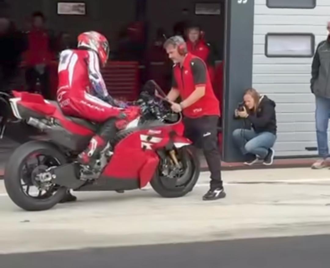 Kemunculan Pirro terjadi secara mengejutkan saat sesi pengujian V2 Champ Academy yang berlangsung pada Senin (14/4). Dalam dokumentasi foto dan video yang dirilis, Pirro terlihat mengendarai Desmosedici bertajuk GP27 yang sudah menggunakan mesin 850cc, desain aerodinamika terbaru, serta ban Pirelli yang akan digunakan mulai musim 2027.