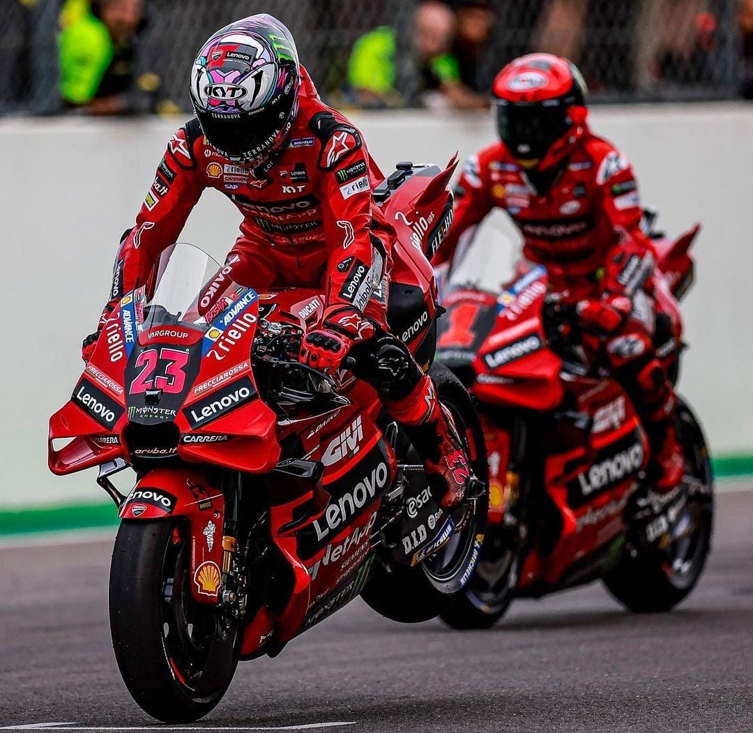 OtomotifZone.com – Jakarta. Duet maut tim Ducati Corse diperkuat dengan dua pebalap luar biasa. Ada Enea Bastianini dan Francesco Bagnaia. Dua pebalap ini kalau sudah bersatu berbahaya. Duet maut ini menjadi ancaman serius ditahun 2023. Jadi hati hati ya!!!