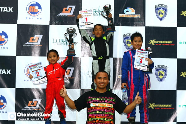 Berkat bermain cantik dan selalu waspada, akhirnya duo Gandasari menapaki podium tertinggi dikelas cadet 60 cc dan Kealton Santoso podium 3.
