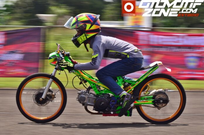Putaran akhir Final Gear Drag Bike Bodisa 201 Meter 2021, yang telah berlangsung akhir pekan kemarin (18-19/12/2021) di Sirkuit Non Permanen TNI-AU Cicangkal, Rumpin, Bogor – Jawa Barat. Salah satu motor balap VReinz yang beringas ialah Bebek 130cc Tune Upnya.