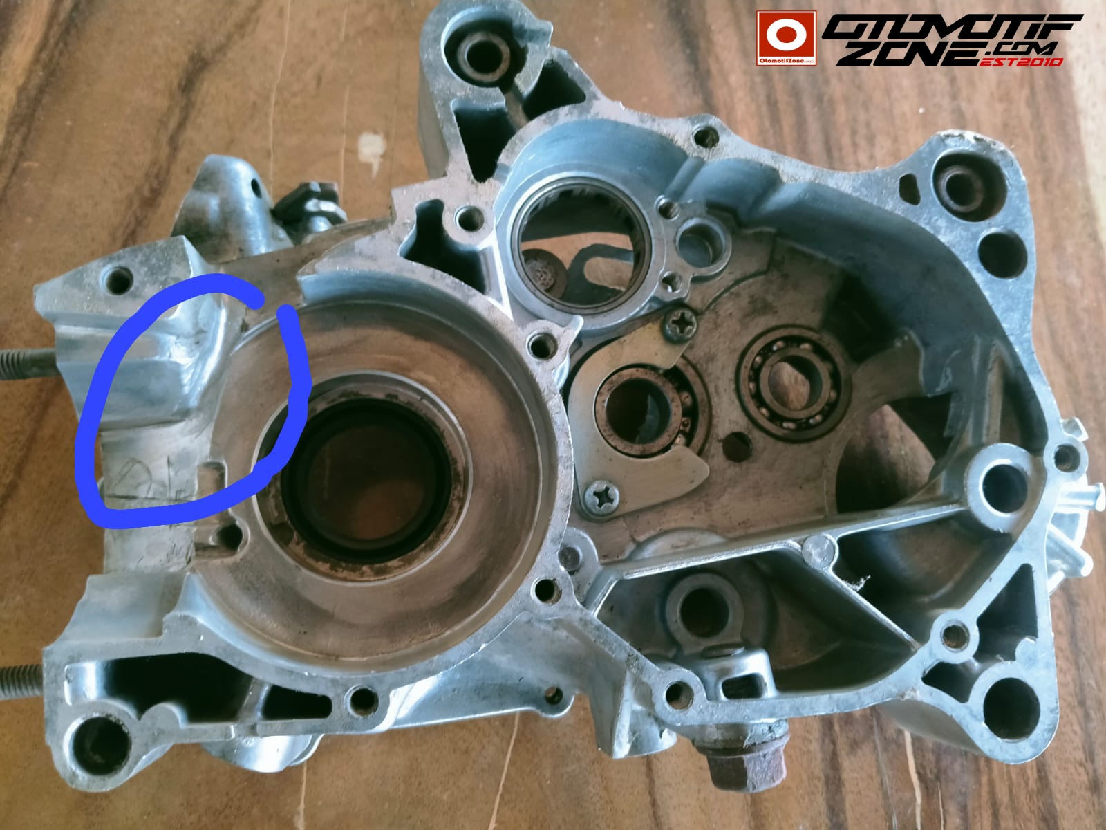 “Bagian bak mesin dibawah manifold atau leher angsa karburator, dilubangi lagi agar aliran bahan bakar jadi lebih lancar. Bearing kruk as aslinya bawaan Yamaha diganti dengan Kawasaki tipe HS, namun nomer kode bearing tetap sama yaitu 6205,” kata Wa’ Oded, mekanik HMM21 Racing Otodidak di kawasan Jl. Bendungan Rentang, Jatitujuh.