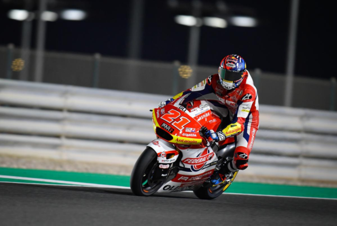 OtomotifZone.com – Doha. Fabio Di Giannantonio (Federal Oil Gresini Moto2) menikmati awal yang sempurna di Grand Prix Doha dimana pembalap Italia itu berhasil mencetak waktu 1: 59.931 untuk mengalahkan Marco Bezzecchi (SKY Racing Team VR46) dengan selisih 0,045 detik di Moto2 FP1. Joe Roberts (Italtrans Racing Team) meraih P3 dengan catatan waktu lebih lambat 0,163 detik dari Di Giannantonio.
