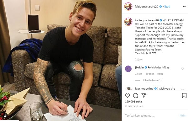 Jauh lebih cepat dari musim 2018 lalu ketika banyak pembalap umumkan kontrak baru di awal seri. Lewat akun Instagram Fabio Quartararo konfirmasi foto dan ia mengatakan sesuatu terkait kontraknya ini.