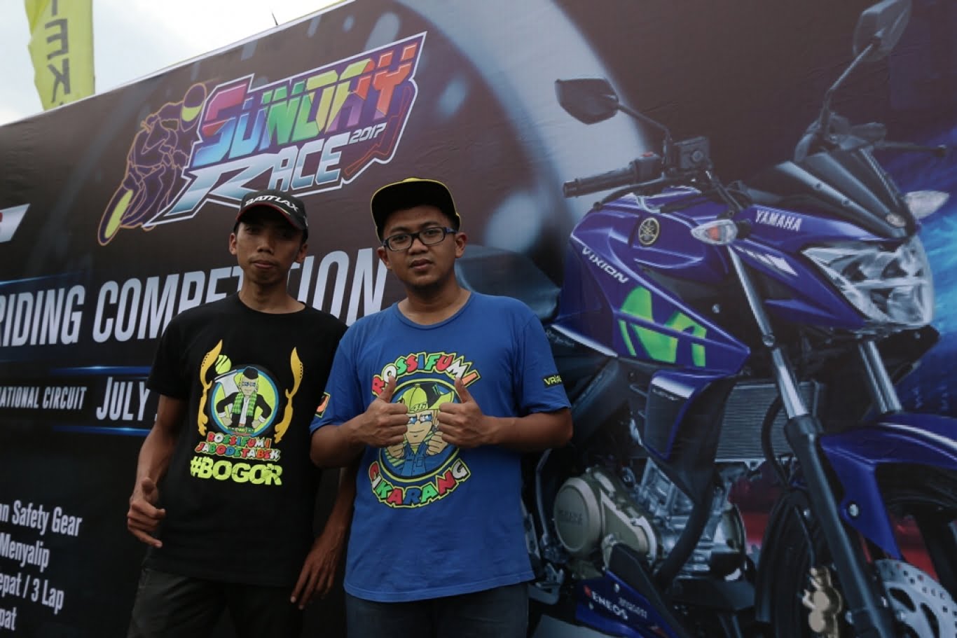 Otomotifzone.com – Sentul. Yamaha-Valentino Rossi, dua hal yang pastinya sangat sulit terpisahkan. Pembalap Movistar Yamaha MotoGP tersebut memang punya pendukung fanatik di dunia dengan jumlah besar. Tak terkecuali di Indonesia yang pada kesempatan ini ikut memeriahkan Yamaha Sunday Race 2017 seri yang berlangsung di Sirkuit Internasional Snetul,Bogor Minggu (16/7).