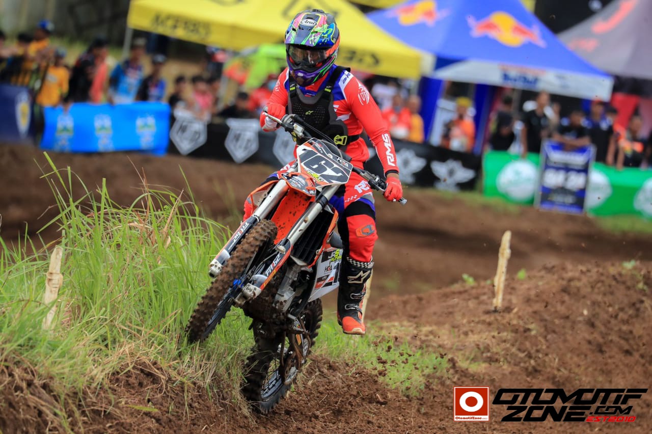 OtomotifZone.com – Banjar. Farhan Hendro berhasil kuasai podium pertama MX1 di ajang Powertrack Seri 1 2021 di sirkuit Gelora Banjar Patroman, Kota Banjar, Jawa Barat, (27-28/11) kemarin. Krosee yang meraih medali Perak di PON Papua, lalu kini bergabung dengan tim RMS milik dari H.Rusdi Masse, asal Sidrap, Sulawesi Selatan.