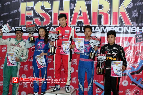 OtomotifZone.com-Sentul. Berbekal 2 kali kemenangan dan 1 runner up dari 3 laga Eshark National Karting Championship 2015,c ukup bagi M Ferrel Fadhil (UI Racing) puncaki klasemen point sementara kejuaraan dengan total point 303,5 mampu memperlebar jarak dengan Gezha Sudirman (TKMRacing) dengan selisih 27 point diikuti M Harits diposisi 3 klasemen sementara dengan total 257 point.