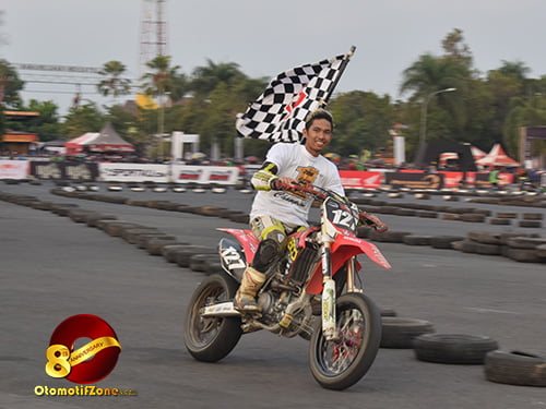 Nama – nama yang ternyata diunggulkan di preview otomotifZone kemarin, benar adanya. Karena jawara di SM 1 dipegang Doni Tata. Kelas SM2 dan SM3 diluar prediksi yakni Farudilla Adam lokal hero Malang menyabet dua kelas sekaligus , sementara SM4 diraih tetap Raden Aludona dari DIY dan mereka semua berhak motor Matik Honda Beat terbaru. Dari perjalan selama 4 seri ini, Diva Ismayana tetap merupakan crosser unggulan Tim Djagung ORCA Bali MX VMX meski belum pegang poin terbanyak, tetapi tetap dinobatkan King of Moto oleh salah satu produk helmet balap. “ Saya seri ke 2 absen karena saat itu saya cedera di Motocross “ sesal Diva. Meski demikian kelas SM1 seri pamungkas ini Diva tetap podium pertama.