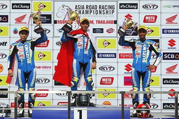 OtomotifZone.com-Thaiand. Balapan Asia Road Racing Championship 2015 memang sudah usai. Final kemarin di sirkuit Chang, Buriram, Thailand (6/11) bagaikan sebuah letupan kegembiraan beberapa team dan pembalap Indonesia. Total bermain all out di seri terakhir ditunjukkan beberapa pembalap diantaranya M. Febriansyah-Yoga Dio di Asia Dream Cup, Dedi Kurniawan-Andreas Gunawan di Suzuki Asia Challenge, Yudhistira di Supersport 600cc, Imanuel Pratna di Asia Production 250cc, dan Anggi Permana – Wahyu Aji – Gupito Kresna – Florianus Roy di Underbone 130cc.