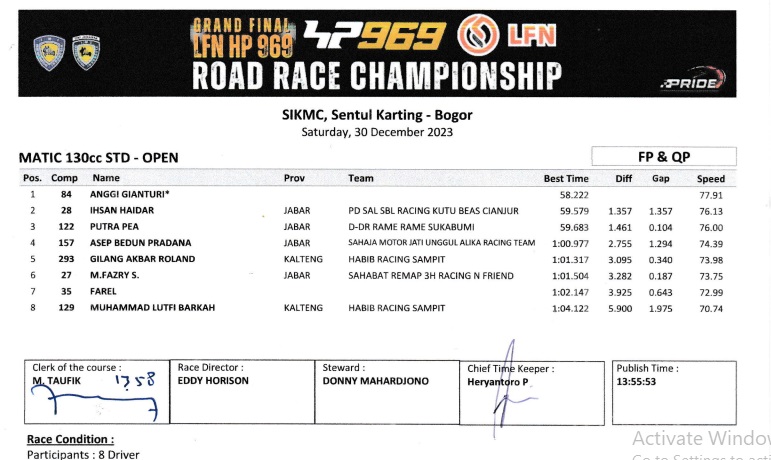 OtomotifZone.com – Bogor. Tampil konstan saat jalani babak kualifikasi MP7 membuat Anggi Gianturi ngacir jauh di Final LFN 969 HP Road Race Championship 2023 (30-31/12/23) di Sirkuit Internasional Karting Sentul, Bogor, Jawa Barat. Pebalap ini memang sudah tidak perlu diragukan lagi sepak terjangnya dalam dunia balap terutama kelas Matic. Dirinya sudah khatam dan ditambah motor yang mempuni membuat dirinya bisa kencang saat melintas. Ini seperti pada kelas Mp7 dirinya bisa memberi jarak kepada lawannya saat kualifikasi sampai 1 detik lebih.