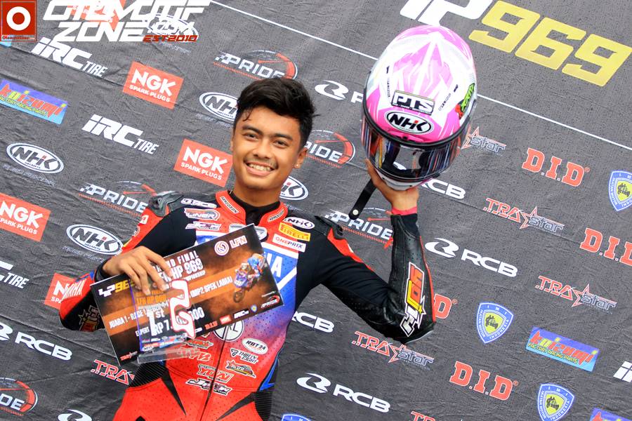 “ Saya pada balapan kali ini Cuma belajar saja mas dari balapan sebelumnya. Saya pernah balap di Sentul juga kondisi sirkuit hujan. Mas tau sendiri saya jatuh beberapa kali. Itu menjadi Pelajaran saya agar bisa lebih baik. Saya belajar dari situ saja mas dan akhirnya bisa juara. Kalau settingan mesin sama saja mas yang dipakai sama saat balap kering,” ujar Aldiaz langsung kepada OtomotifZone.com.