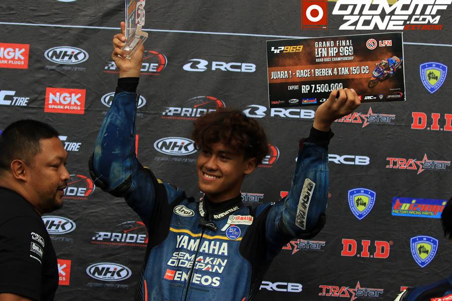 “ Tadi sempat out itu saya tidak sengaja mas injak rem belakang. Tapi saya Kembali bangkit dan focus untuk mengejar posisi pertama. Dan akhirnya saya bisa meraih hasil juara pertama ini mas. Butuh waktu lima lap saja saya untuk adaptasi sama motor ini mas saat hujan. Saya harus tunggu ban hangat dan enak baru saya push,” ujar Aldi langsung kepada OtomotifZone.com