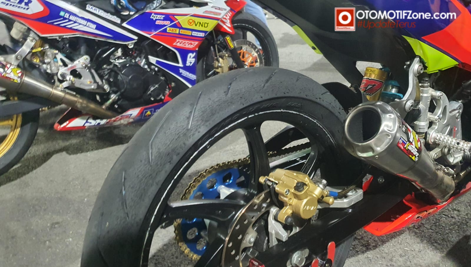 ” Mesin hanya peremajaan peremajaan saja dari seri 1. Jadi speknya sama. Hanya saja dari Palu itu Gian pakai rangka Alfath. Selalu bermasalah pada belakangnya. Tapi sekarang sudah tidak. Lalu pada ban saya pakai Aspira Premio dan ternyata mangkas waktu yang lumayan luar biasa,” ujar Asrul yang biasa disapa Kanda.