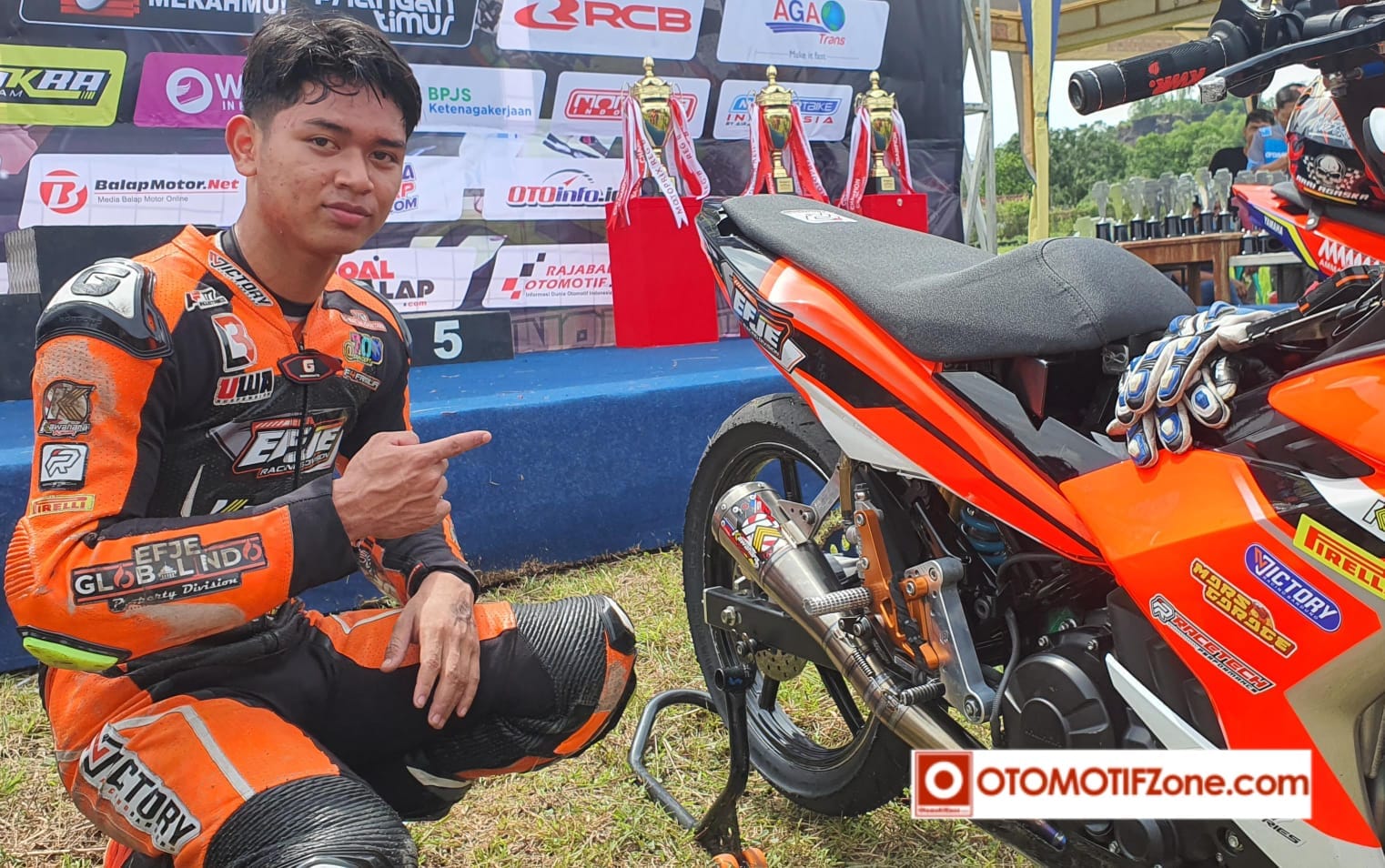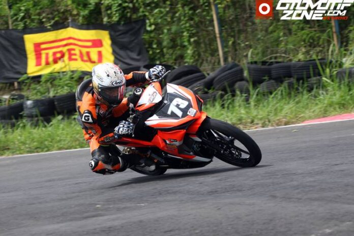 “ Aku tadi bermasalah pada Sleding Pad om. Lepas ini (Tunjuk lutut Kanan) . Jadi tadi juga hampir jatuh mas. Tapi ya tidak masalah mas saya masih bisa menangani. Tapi ini akan ada evaluasi untuk race 2. Saya mau ada sedikit perubahan pada motor. Supaya race 2 saya bisa langsung kabur,” ujar Akbar Abud langsung kepada OtomotifZone.com.