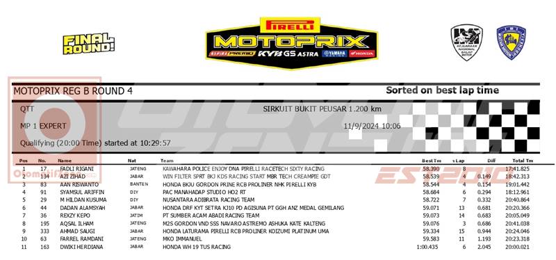 Lalu apakah Fadli bisa menjadi juara dan bisa memastikan gelar Juara Region? Kita tunggu saja kabar selanjutnya hanya di OtomotifZone.com. Dan berikut hasil Kualifikasi expet: