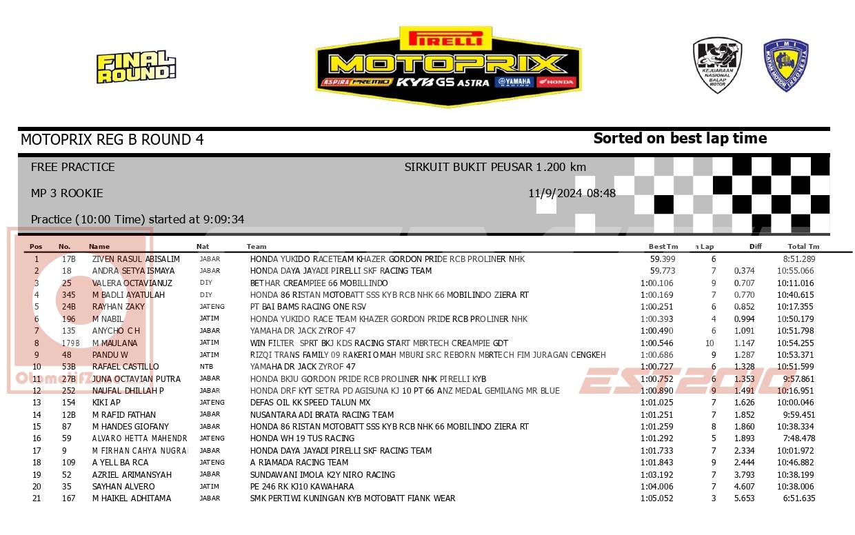 Lalu berapa posisi pebalap jagoan kalian? Agar lebih jelas berikut hasil FP Rookie :