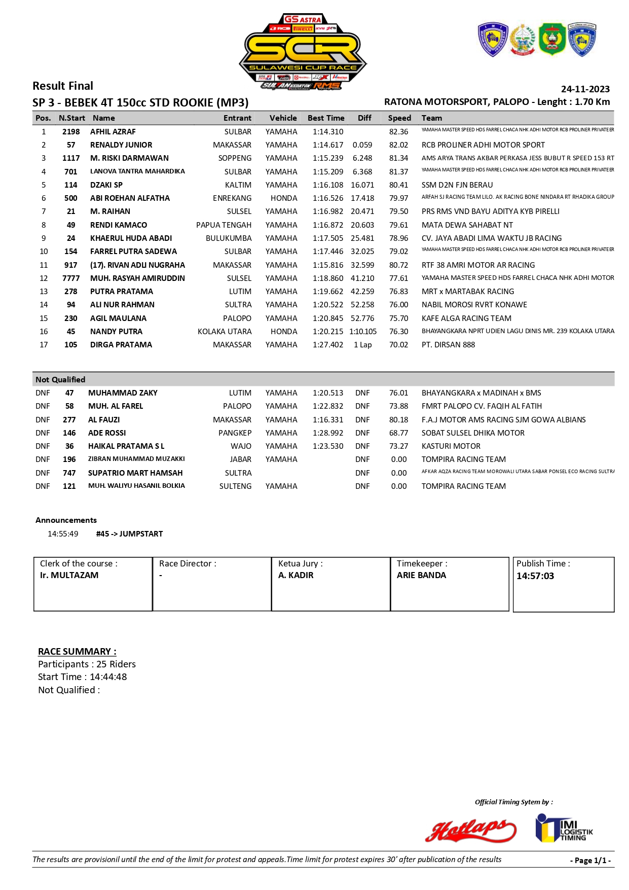 Tapi ini adalah balapan. Apapun bisa terjadi saat balapan berjalan. Dan ini adalah warna jalannya balapan. Sekali lagi selamat untuk juara dan terus semangat untuk para peserta lain. Berikut adalah hasil juaranya: