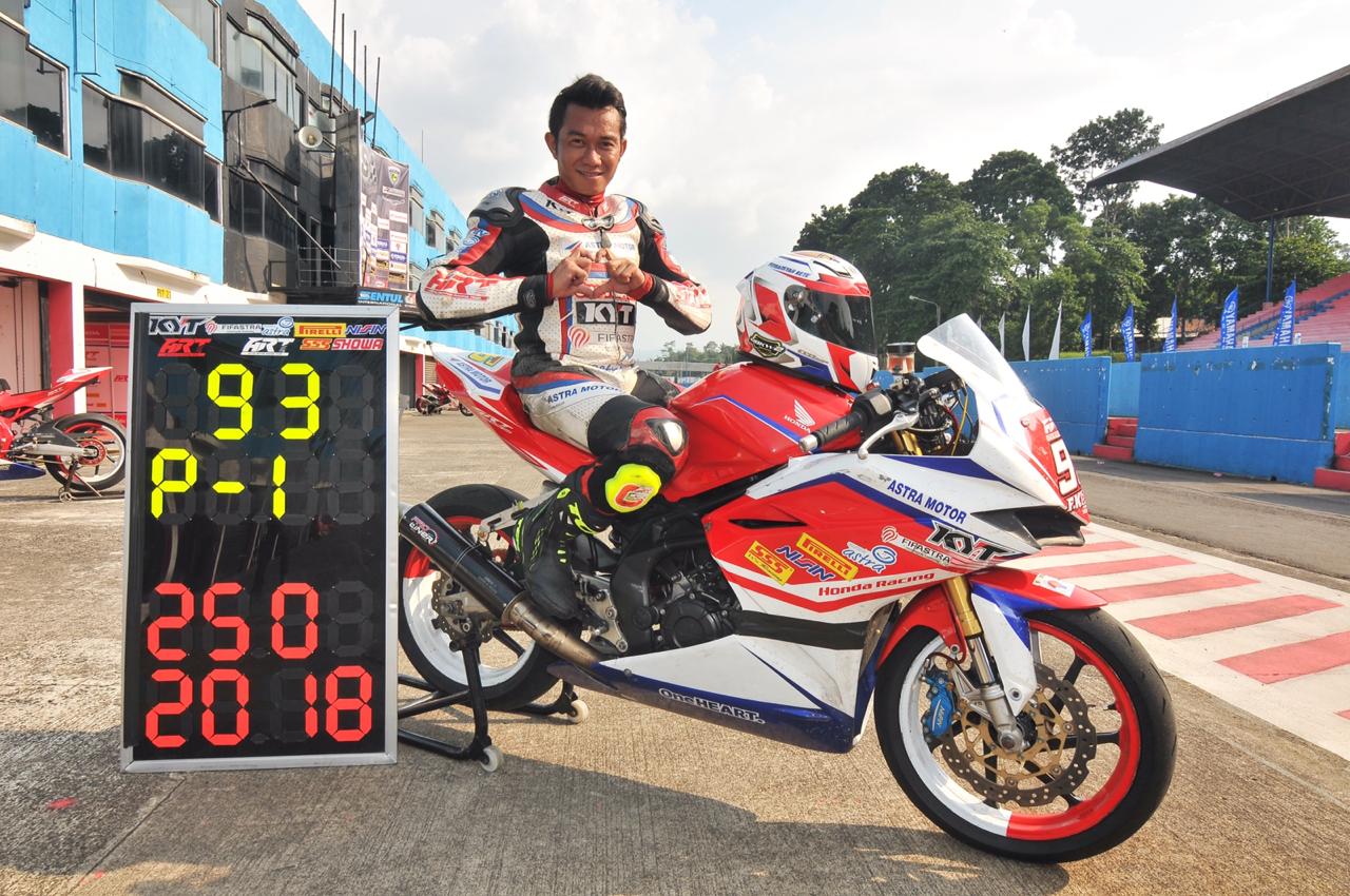 “ Alhamdulillah saya ucapkan terimakasih kepada Allah atas raihan hari ini. Saya ucapkan kepada tim dan segenap crew yang membantu saya beserta jajaran sponsor, kepada orang tua saya yang sudah bantu doa dan Istri saya. Alhamdulillah saya Champion di kelas Kejurnas Sport 250. Saya memiliki target kalau saya ke 1 saya bisa Juara Umum,” ujar Kete langsung ditemui OtomotifZone.com