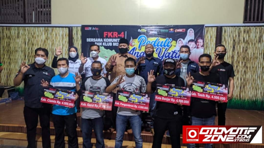 Santunan dari FKR-4 Priangan Timur, serentak Kota dan Kabupaten Tasikmalaya, Kabupaten Garut, Kabupaten Ciamis, Kabupaten Pangandaran dan Kota Banjar. “Jadi kita serentak pada 6 titik, 288 anak yatim tersebut berasal dari 6 titik itu,” jelas Dani Slalom. Ada pun kegiatan pembuka secara seremonial berlangsung di Kota Tasikmalaya dan penyerahan secara simbolik pada 5 titik berikutnya.