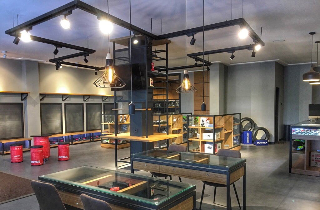 Andi mengatakan, di workshop baru ini dua lantai dikhususkan untuk customer. “Lantai satu khusus untuk bengkel (pemasangan part atau perawatan motor). Sedangkan lantai dua untuk display part variasi juga waiting room,” paparnya.