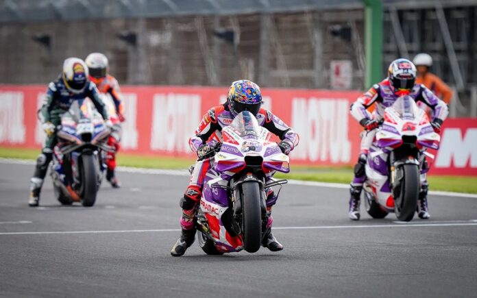 OtomotifZone.com-Jepang. Menjelang putaran-putaran akhir seri MotoGP 2023 Jorge Martin tampil cukup digdaya beberapa pekan ini setelah terakhir pembalap asal Spanyol itu juara sprint race di MotoGP India dan berlanjut podium kedua di tempat yang sama. Seri MotoGP Motegi nama Jorge Martin lagi-lagi berhasil menduduki posisi atas di FP1 siang tadi. Pembalap Prima Pramac Ducati tersebut mengamankan posisi terbaiknya.